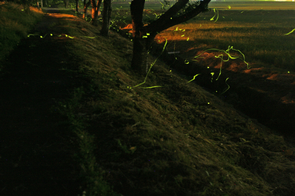 ホタルの観察会に行ってきました。ここにはゲンジボタルとヘイケボタルがいるそうです。数千匹はいるようでした。